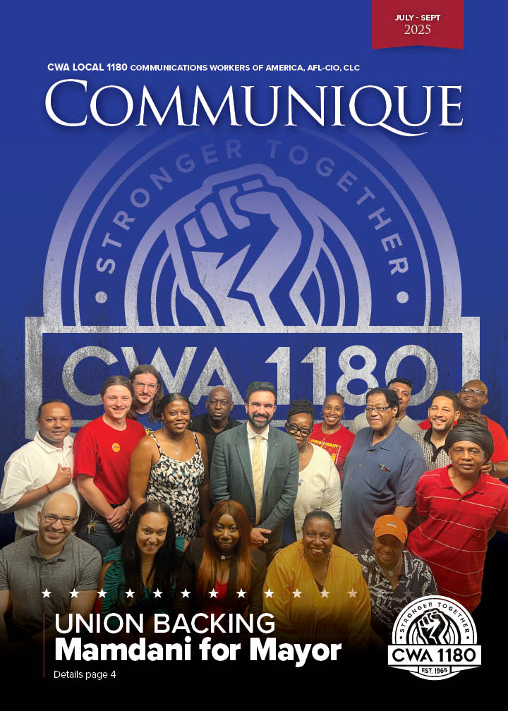 CWA Local 1180’s quarterly magazine, the Communique, has consistently garnered top awards in the Metro New York Labor Communications Council and the International Labor Communications Association contests. Competing against some of the country's best labor publications, the Communique repeatedly stands out in categories for both writing and graphic design, while Local 1180's outreach campaigns and social media programs take the highest of honors.